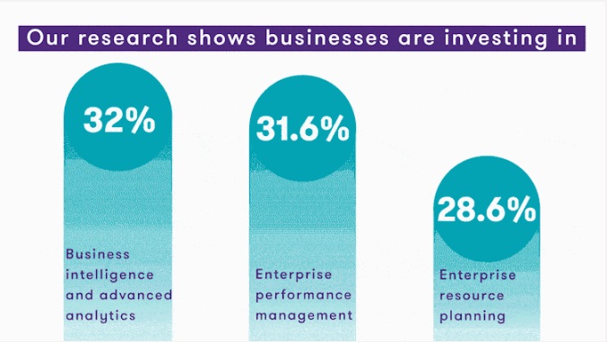 More than 30% of respondents have indicated that they plan to invest in business intelligence and enterprise performance management (EPM) solutions, with enterprise resource planning (ERP) also scoring highly at 28.6%. Mark says: “The results are in line with what we expected. Around 50% of the conversations I’m having are focused around organisations that want to employ business intelligence. However, it often comes back to challenges around the quality of data. Organisations know they want business intelligence, but don’t understand what it takes to deliver it, the steps you need to take in creating integrity of data. Similarly, they often don’t understand the possibilities.”